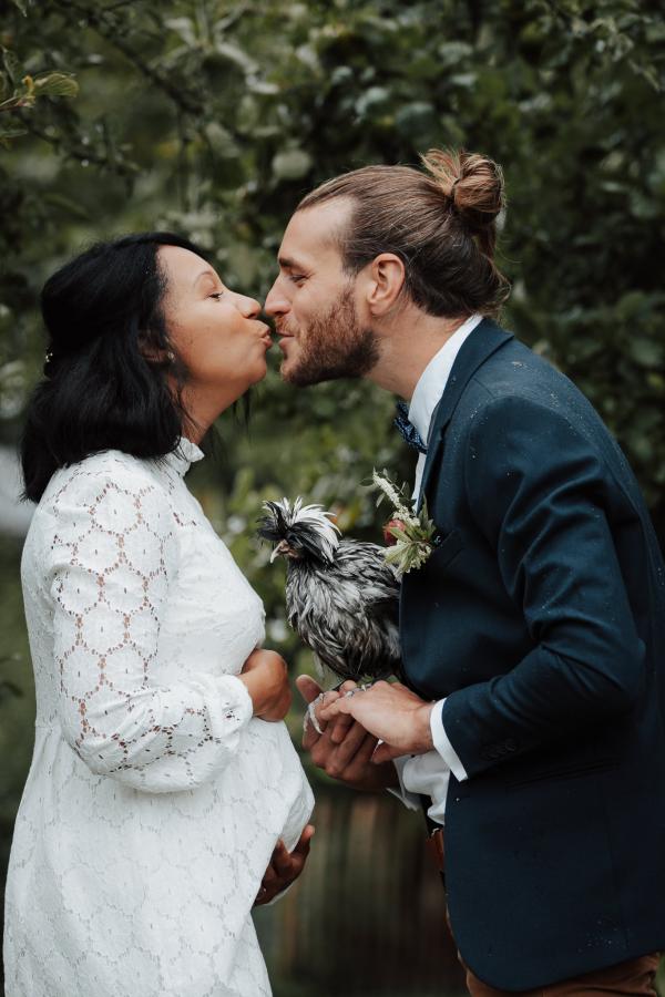 Un petit civil en toute intimité à deux, juste accompagnés de Mireille, la poule/mascotte de la famille.